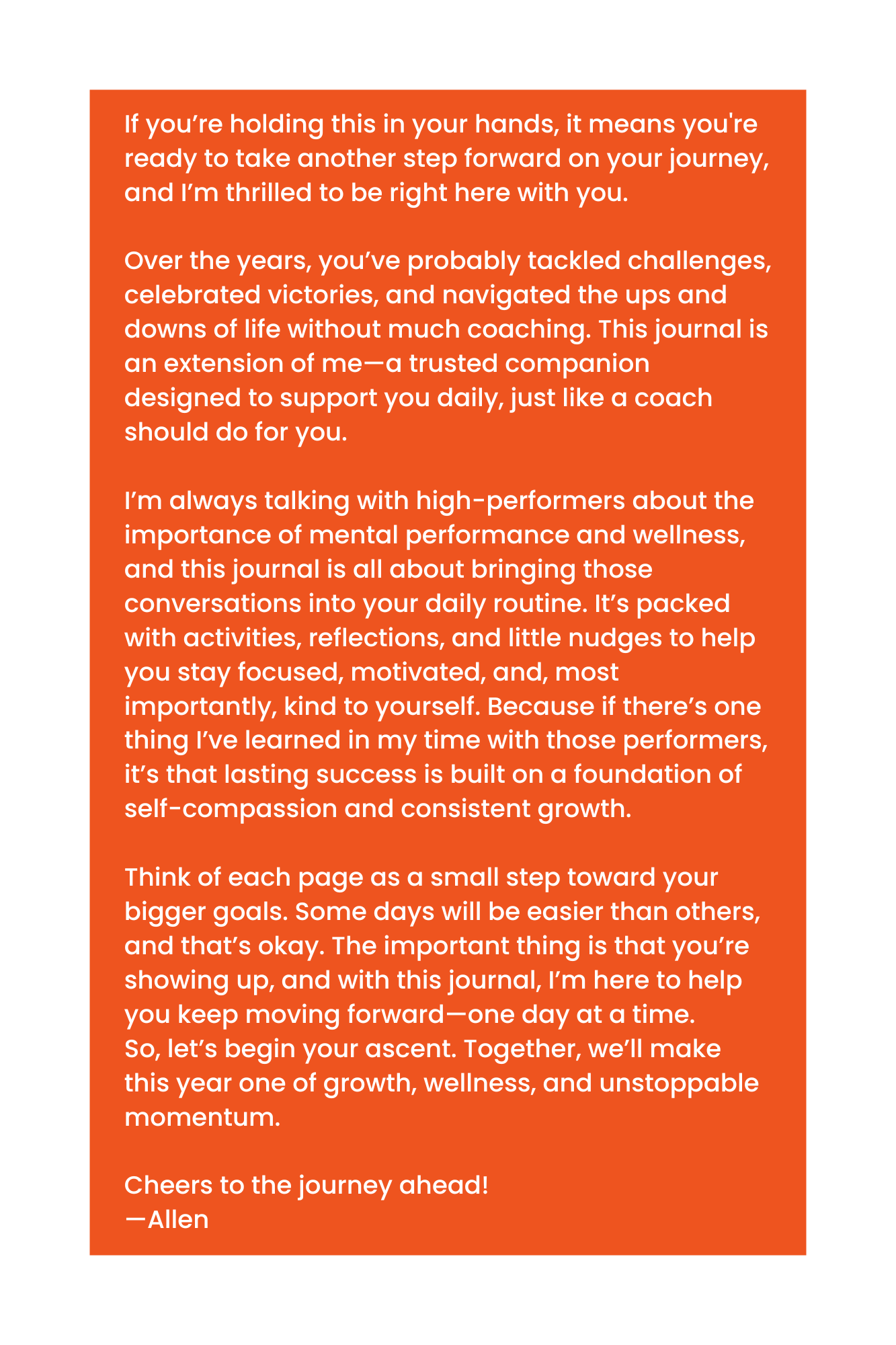 Looking for the perfect gift that keeps on giving? The Reach Your Peaks: 2025 Weekly Planner is an incredible gift for those who love pushing themselves to be their best. Whether for a friend, family member, or your entire team, this planner is an uplifting and practical tool to help them stay accountable and reach their mental performance and wellness goals all year.